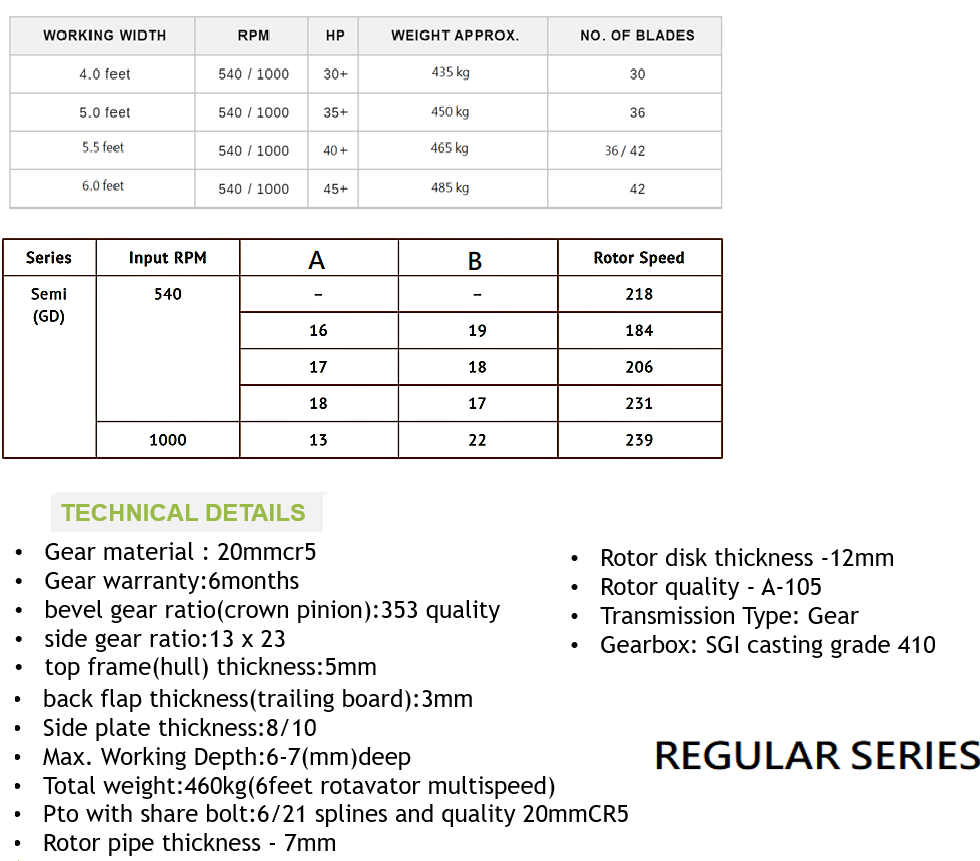 The Regular Series rotary tiller is a proven compound performer which can be used for both dry and wet cultivation. It produces a fine seedbed on light and medium soils with minimum passes. It’s an all-weather tiller with multiple drives, speeds and blades to choose from.